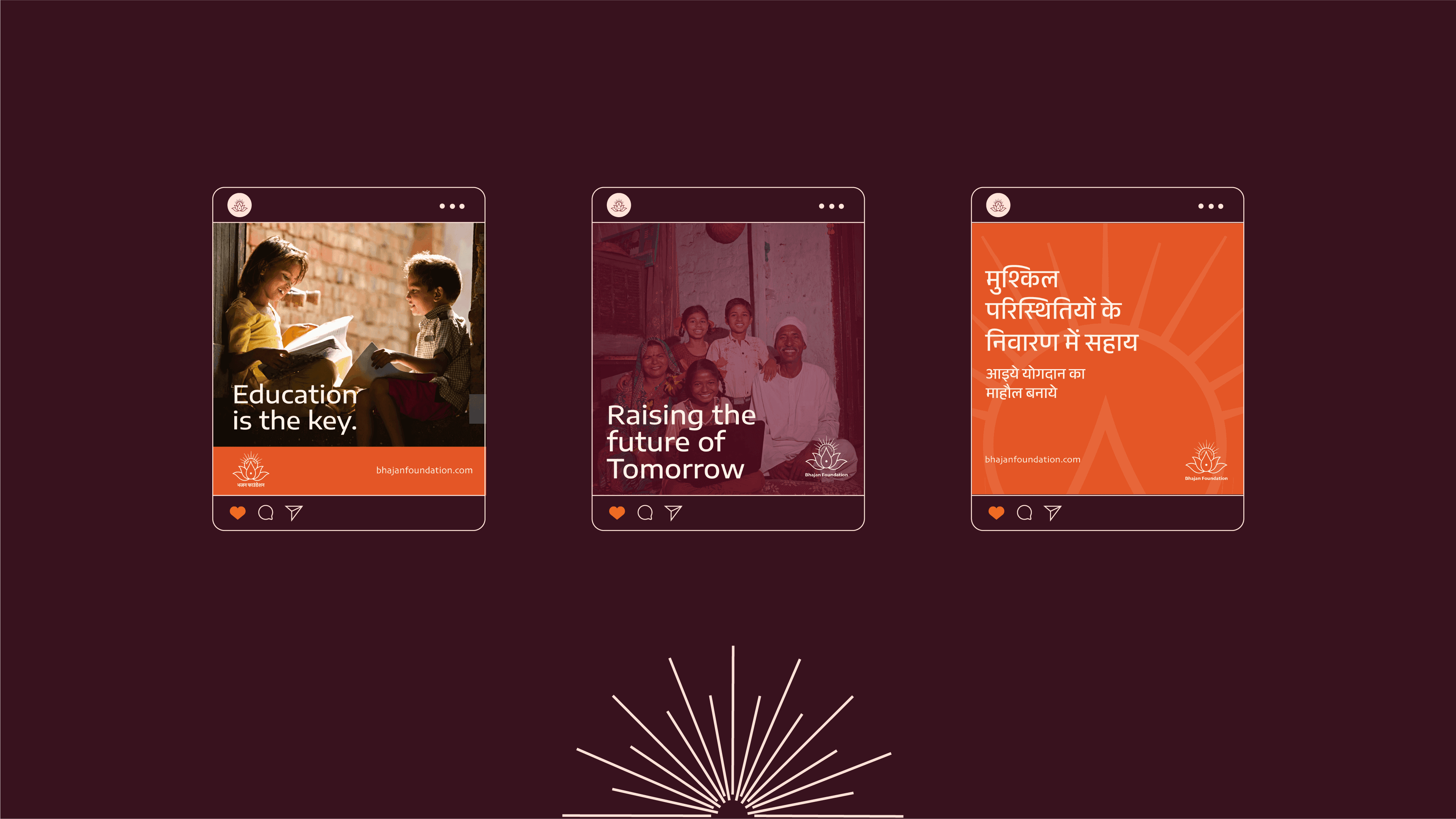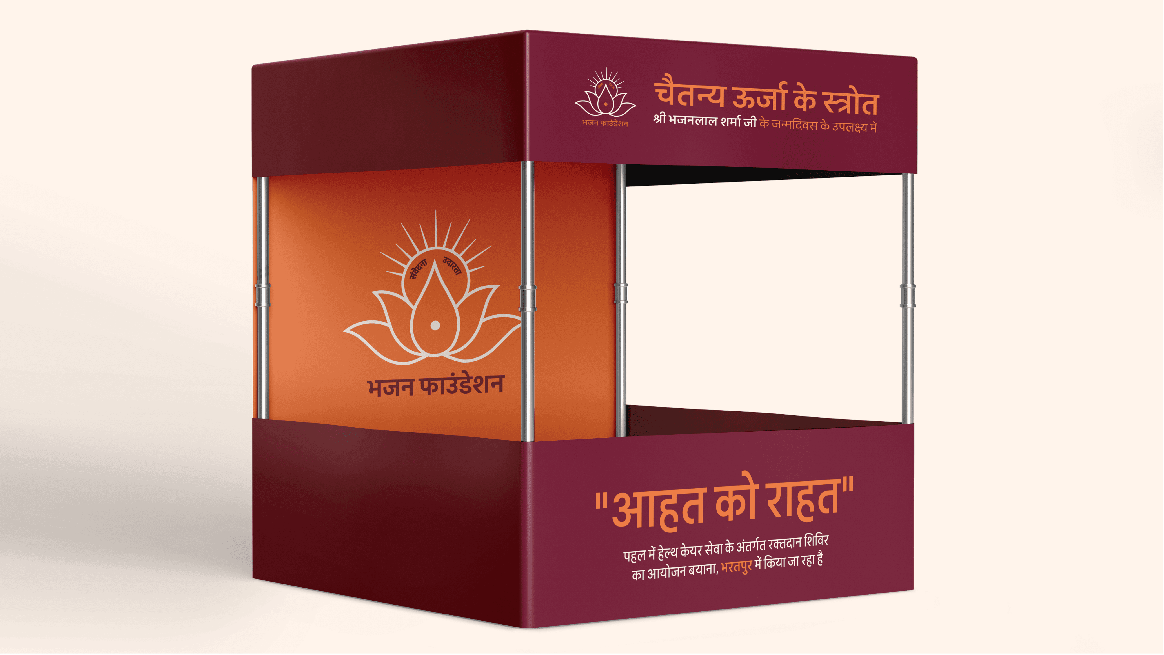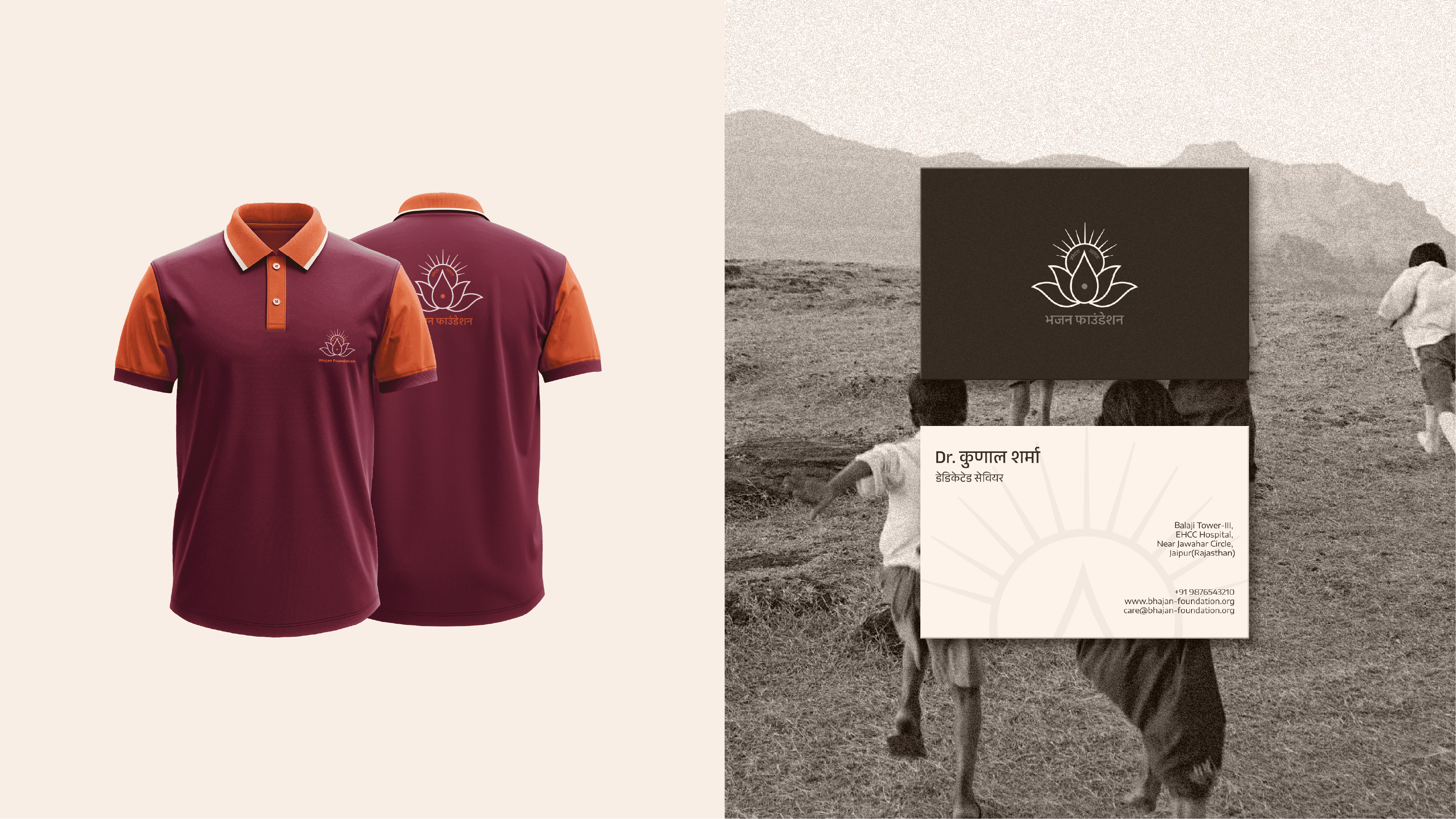 The Bhajan Foundation's logo is a thoughtful representation of its mission and values. At its core is a stylised lotus flower, a symbol deeply rooted in Indian culture, representing purity, spiritual awakening, and resilience. The lotus signifies the foundation's commitment to uplifting those in need, embodying the essence of its motto, "आहत को राहत" (Relief to the Afflicted).
