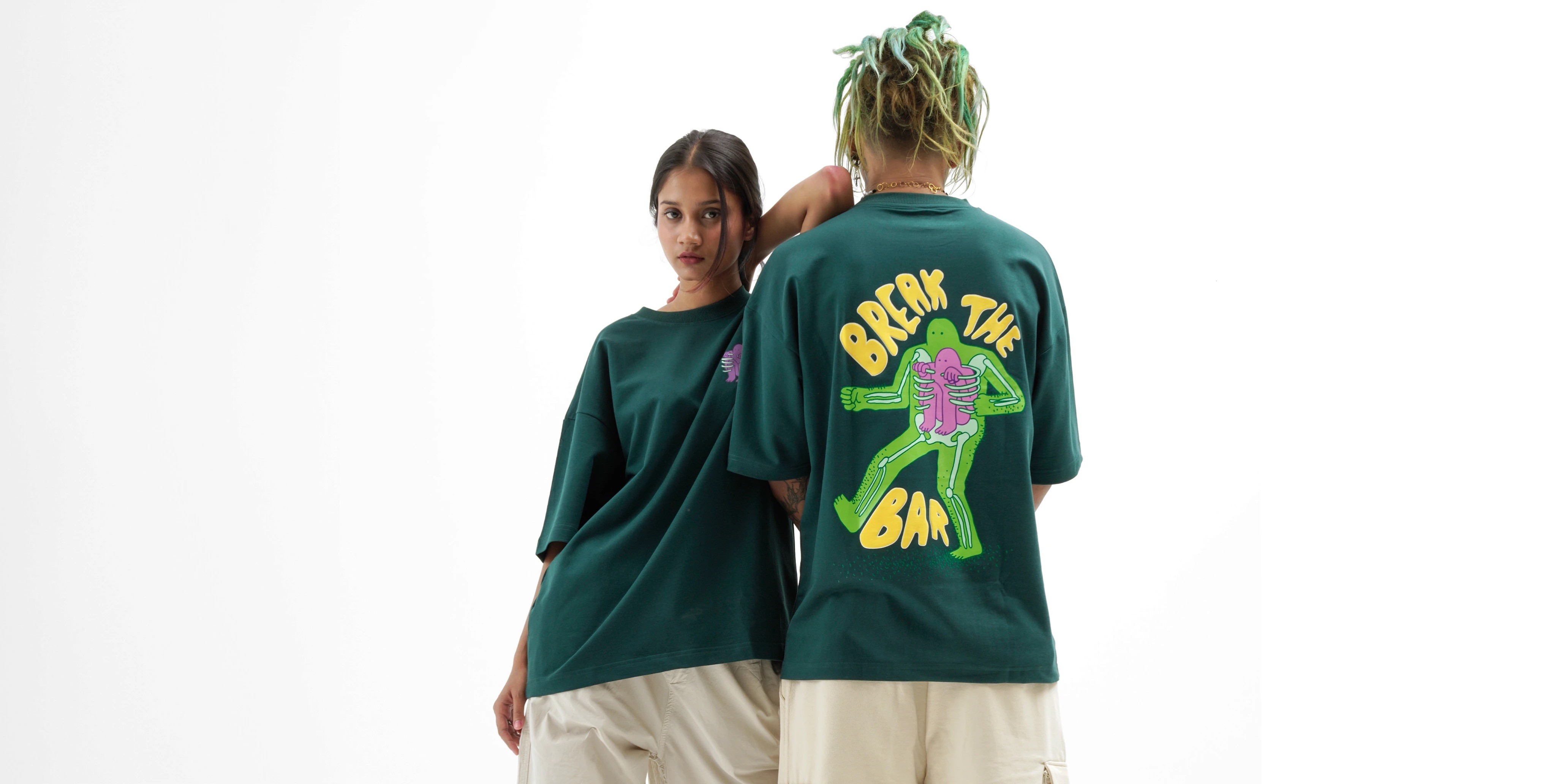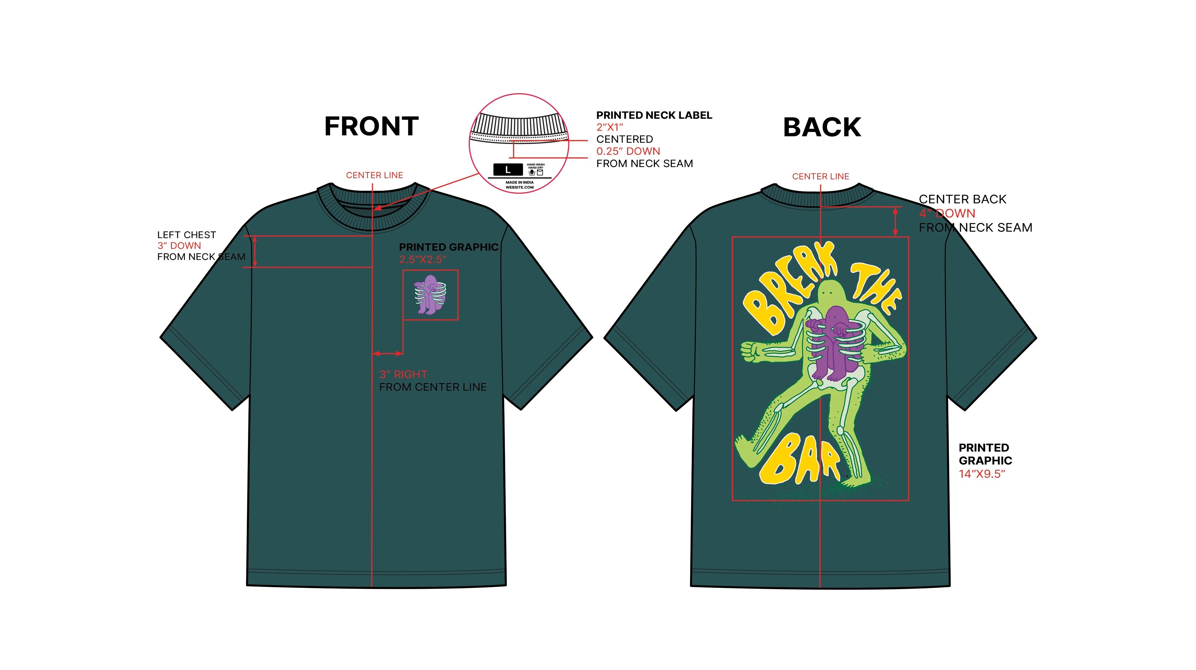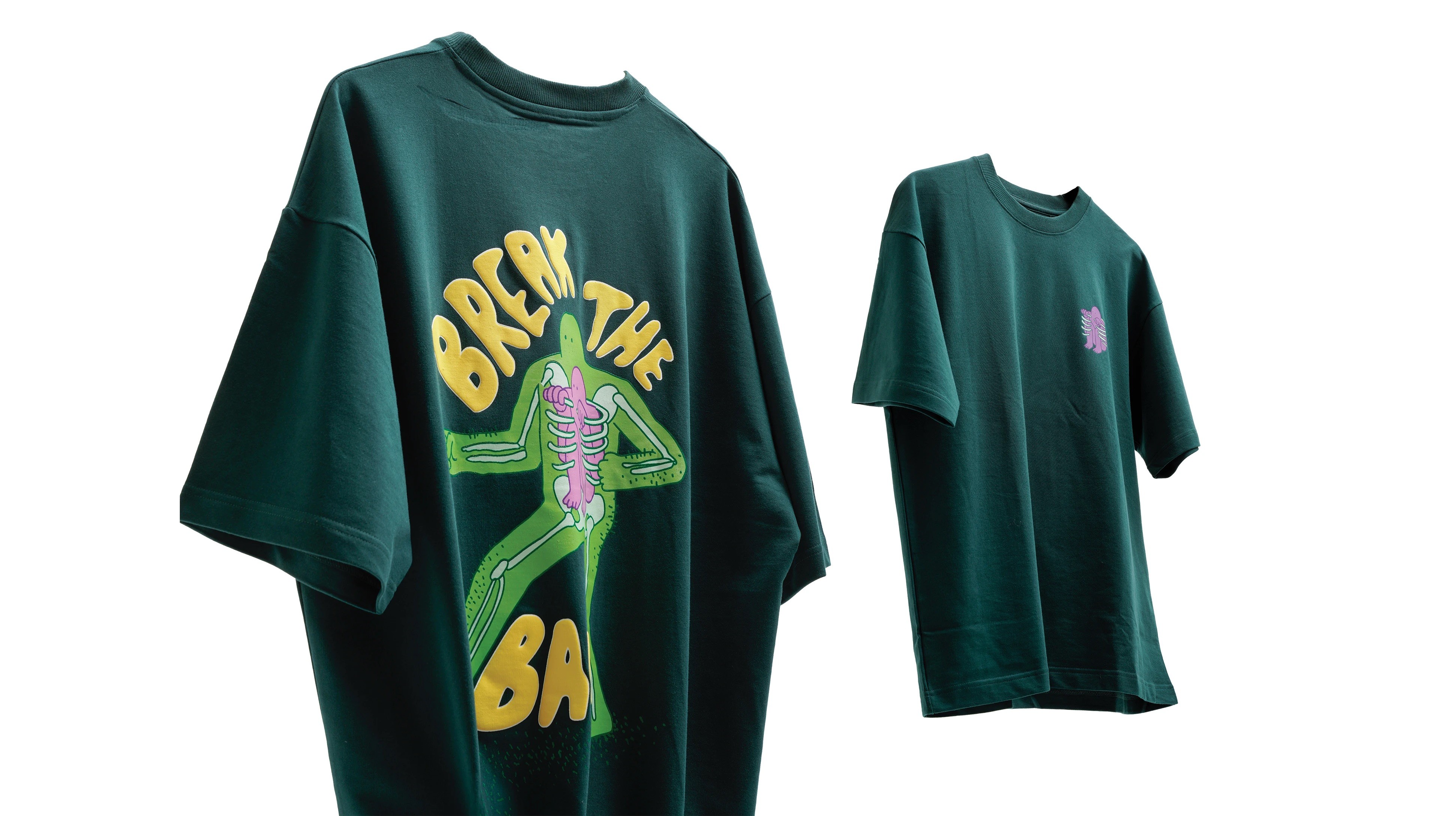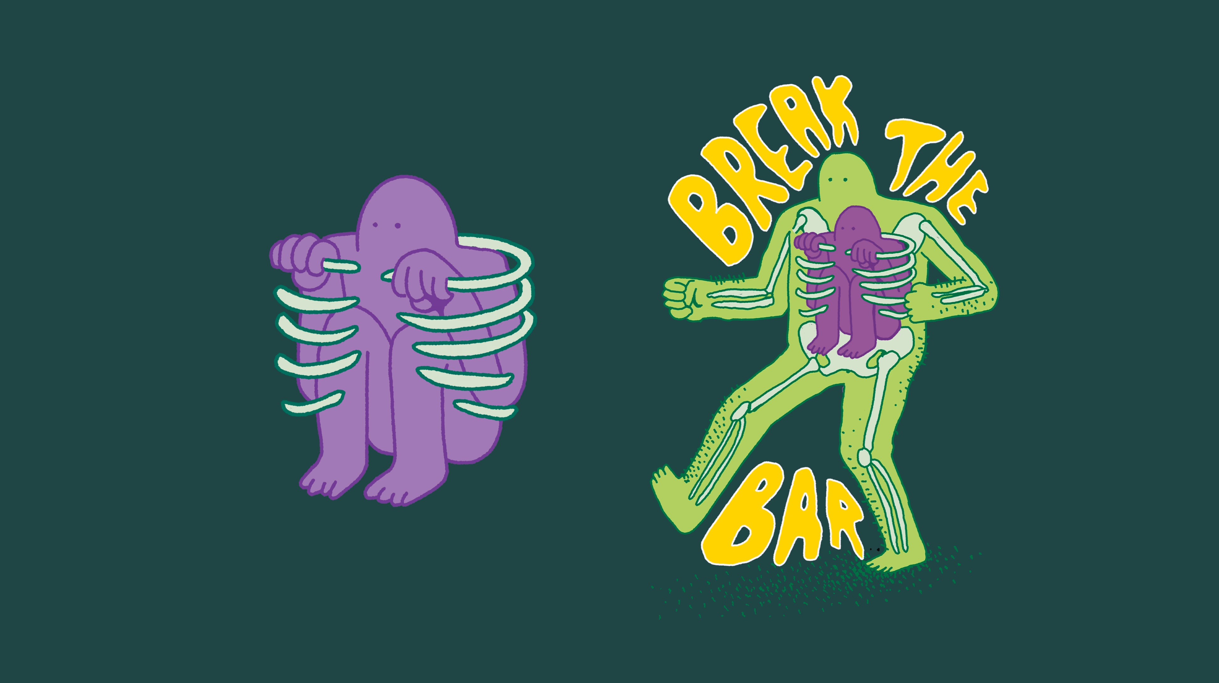 An imaginative representation of our inner selves situated inside our ribcage, with a compelling message of breaking barriers visually communicated through the text "Break the Bar." A bold and empowering t-shirt design symbolising breaking through barriers and overcoming challenges.